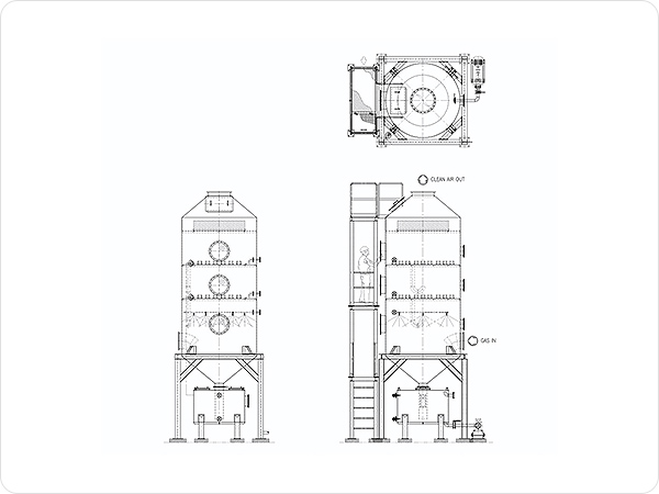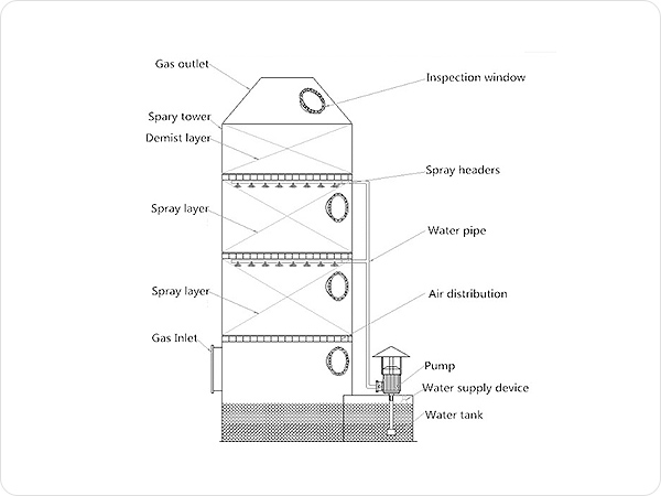 휘발성유기화합물(VOCs), 퓸(Fume), 미스트(Mist) 등의 오염물질을 습식으로 처리하는 장치로 가용성 가스 (NH₃, HCI, H₂S)의 포집에 사용되고 있으며 액적, 액막, 기포 등에 의해 함진가스를 세정하여 입자에 부착, 입자 상호간의 응집을 촉진시켜 직접 가스의 흐름으로부터 입자를 분리시키는 장치입니다. 반응생성물이 수용액으로 배출되므로 세정액의 폐수처리가 필요합니다. 증유, 중습, 먼지(Dust), 미스트 제거에도 사용이 가능합니다.
